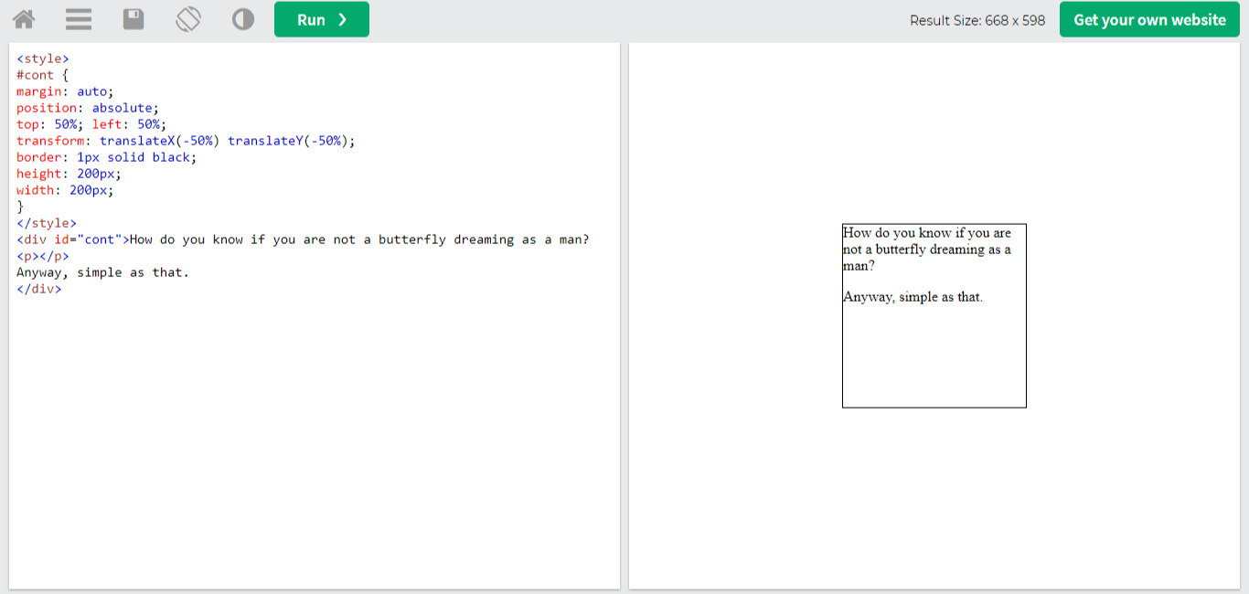 transform: translateX(-50%) translateY(-50%);This should be your result below.