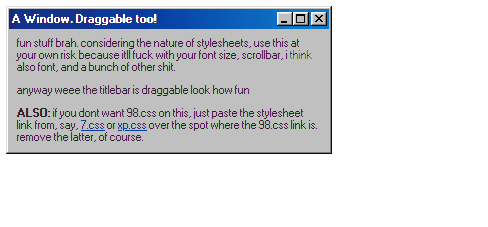 </marquee>Check out the scrollamount="15" bit. This ones easy as fuck: replace that 15 with a higher number if you want it to be so fast you probably cant even read it. I think the default speed without defining a speed is ... 10?Here let me dumb it down for you like crazy.Higher number than 10 = faster than default speedLower number than 10 = slower than default speedWANT IT EVEN MORE DUMBED DOWN? I feel like im in a tim and eric skit but here we go.Bigger number = fasterSmaller number = slowerSO THERE YOU GO! also the text in that snippet is from what is probably my favorite scene from Pawn Stars. I need to bring back the embedded corner video on desktop for that oneclicksound.playclip(); into the box below on click.NOTE: it seems only image elements support the on click event, so with other elements, so, say, text, you'll have to write html. use this on any element you'd like—the world's your oyster!HTML: onmouseover="mouseoversound.playclip()" onclick="clicksound.playclip() before closing your element's opening tag. here's an example.<div onmouseover="mouseoversound.playclip()" onclick="clicksound.playclip()">hover/click me!</div>...and there you have it!how do i customize my sounds? simple! upload your desired sound(s) to a file hosting site like dropbox or catbox, grab the link, then replace the original links found at the bottom of the script with your own. **please note that if you're using dropbox, you'll have to edit your link to make it work. look here, at the bottom, for a quick guide.
